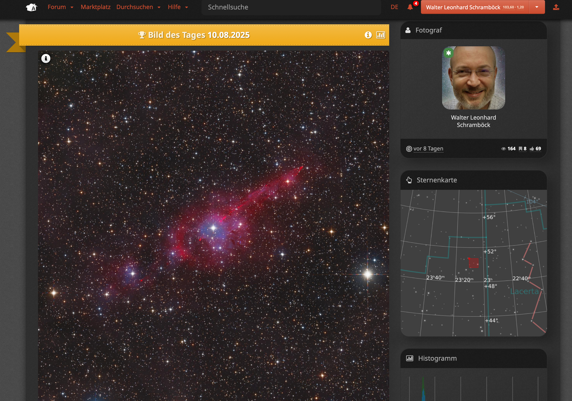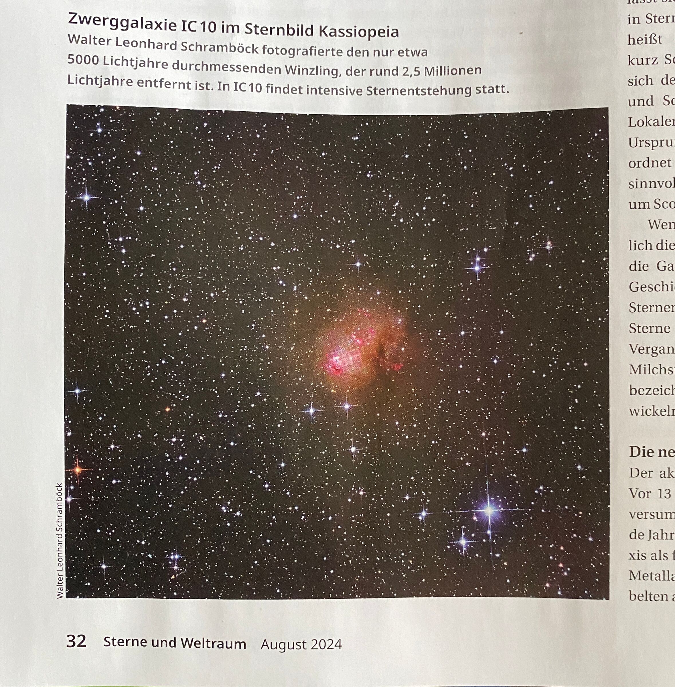 In "Sterne und Weltraum" Ausgabe 8/24 auf Seite 32 ist diese Aufnahme von mir von der Zwerggalaxie IC10 in einem Artikel zur Sternentstehung in der Milchstraße…