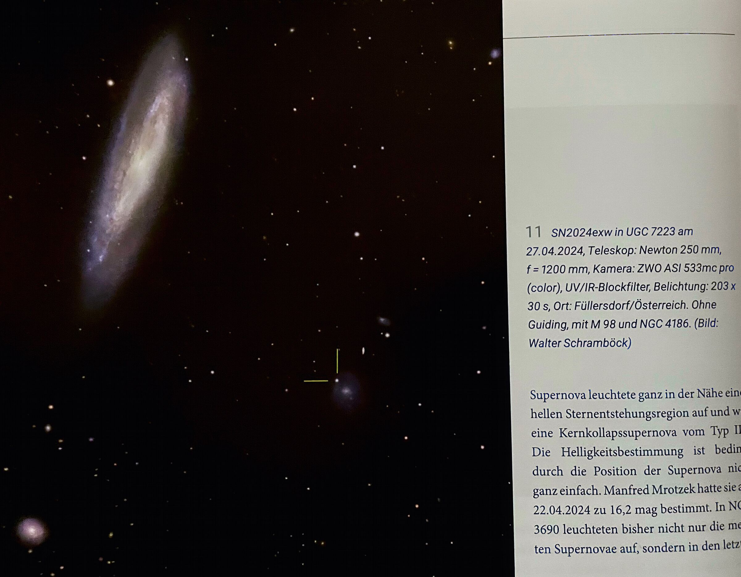 Meine Aufnahme von der Supernova SN2024exw fand seinen Weg in einen Artikel über die "Supernovae im Frühjahr 2024" von Manfred Mrotzek im Journal für Astronomie…