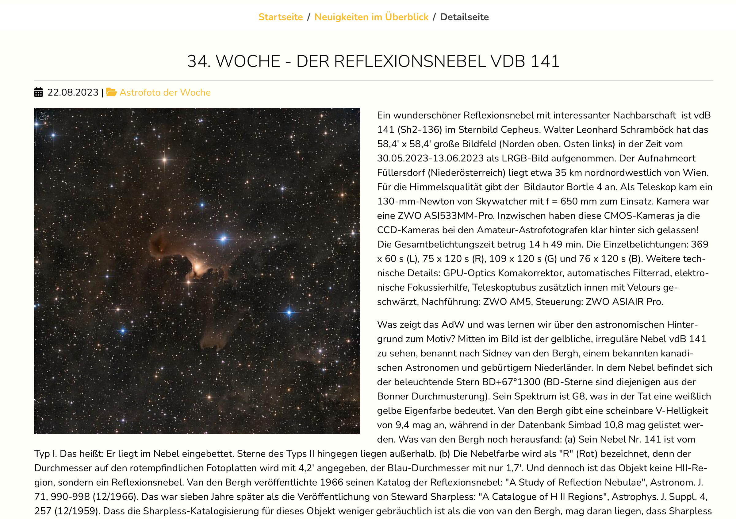 Astrofoto der Woche auf www.astronomie.de: https://www.astronomie.de/aktuelles-und-neuigkeiten/detailseite/34-woche-der-reflexionsnebel-vdb-141